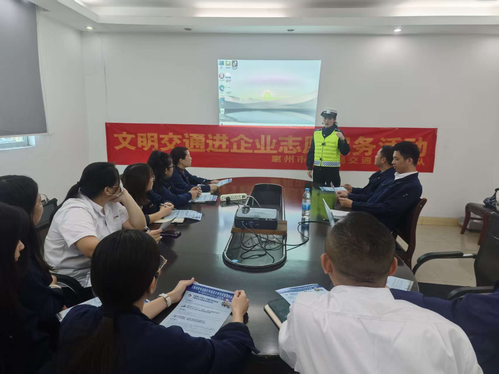 11月25日,惠州市公安局交通管理支队仲恺大队深入辖区惠州市典展五金制品有限公司,积极开展交通安全宣传活动。